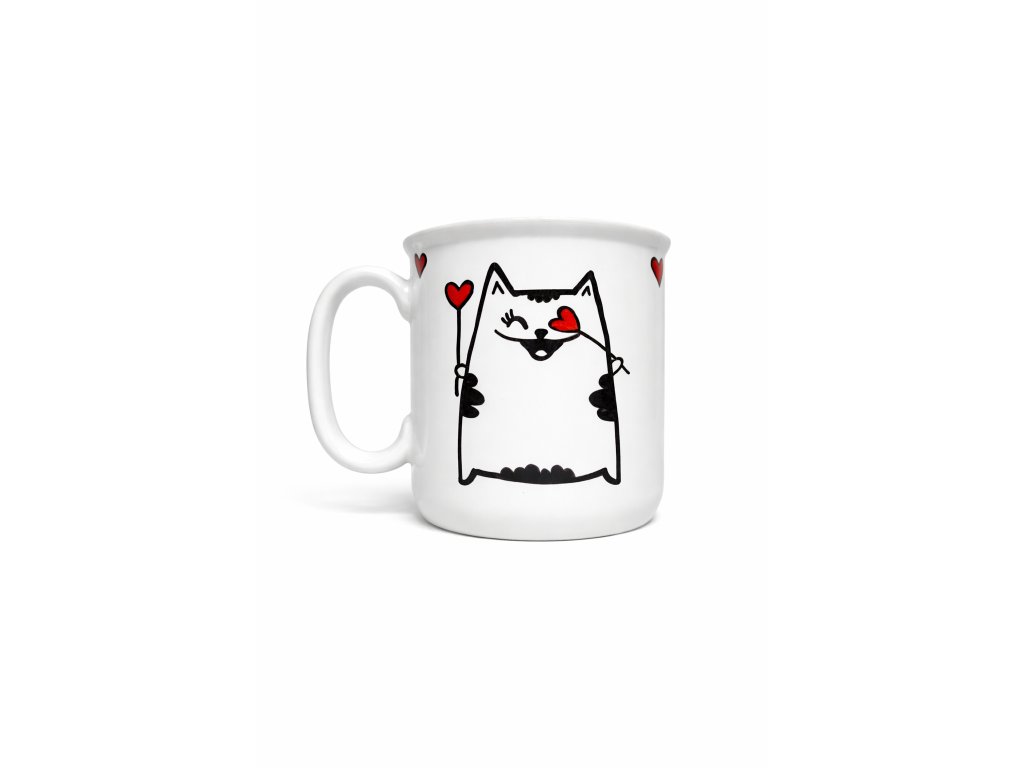 Roztomilý kočičí motiv se srdíčky připomíná,