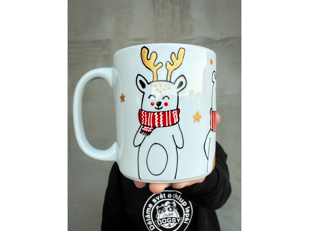 Zpříjemni si zimní rána roztomilým hrnkem, který ti vykouzlí úsměv ještě dřív, než se stihne uvařit čaj nebo káva. Na hrnku najdeš tři spokojené zimní kamarády – sobíka, medvídka a králíčka – všichni zabalení v hebkých červených šálách a připraveni na kouzla Vánoc. 🎄