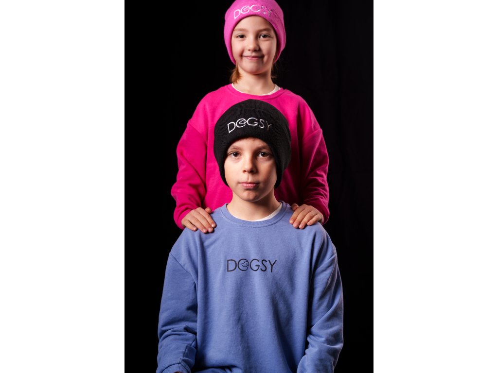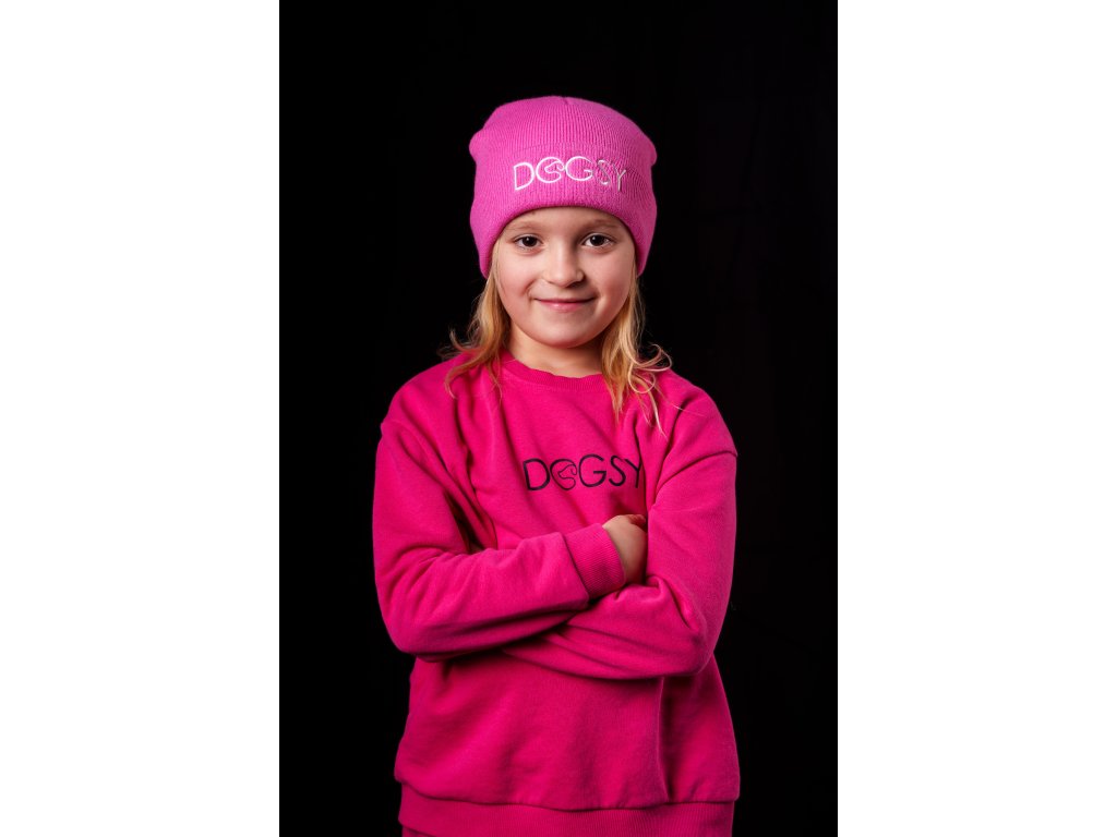 zimní dívčí kulich s bílou výšivkou loga Dogsy